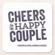 Cheers to the happy couple purple wedding square paper coaster