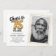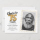 Celebrate your special 75th milestone in style with our finely tailored invitations. Designed with a customisable white background that transitions to your chosen hue, these invites capture the essence of the celebrant with a special photo placement. A splash of faux gold glitter and helium balloons adds a touch of elegance while the modern text template allows you to add your own personal flair. Make your 75th birthday celebration truly unforgettable with our unique invitations.