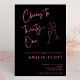 Celebrate the milestone of turning twenty-one with this modern Cheers to 21 Birthday Invitation! Set against a chic black background, these invitations feature a pink playful handwritten font and hand-drawn champagne glasses clinking together. Perfect for a milestone 21st birthday, the design is both unique and trendy, adding a touch of sophistication to your special occasion. Whether you're planning a stylish party or a simple gathering with friends, these invitations will set the perfect tone for an unforgettable celebration. Get ready to pop some champagne and toast to the birthday star in style with this pink and red themed invitation!