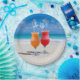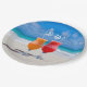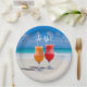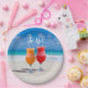 Celebration paper plates for couples. Frosty cocktails on a warm beach is the image with “To us” text, or change it to anything. Turquoise blue ocean water and blue sky gives a tropical feel and is perfect for celebrating a marriage, anniversary, or special time together.
