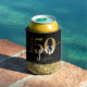 Personalised can cooler insulator party favour with elegant yellow gold glitter pattern on black background and custom "Cheers to 50 Years!" with editable custom age for any birthday celebration.