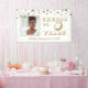 Celebrate any age birthday for him or her and/or welcome your party guests with this champagne gold glitter stars themed banner with bold CHEERS TO # YEARS title and an optional custom text area for personalising as well as a photo. PHOTO TIP: For fastest/best results, choose a photo with the subject in the middle and/or pre-crop it to a square shape BEFORE uploading. Contact the designer via Zazzle Chat or makeitaboutyoustore@gmail.com if you'd like this design modified, on another product or want coordinating items.