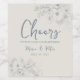 Elegant, vintage, simple, floral dusty blue wedding wine label with periwinkle lace and simple handwritten script. Cheers!