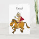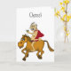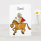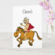 Ridiculous cartoon man with thinning hair, fat belly and "superman cape" with large martini (filled with olives), riding on a horse! On the outside: "Cheers" and on the inside