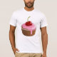A delicious looking cherry cupcake. This design is good enough to eat. The design is of a cupcake that has pink icing and then a cherry on top. This cherry cupcake design looks great on this mens t-shirt. Perfect for yourself or as a gift