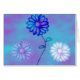 Three daisies on blue and teal cloudy background. The centre daisy has stem and leaves. Outer daisies are stemless and surrounded by outer glow. There are different blending modes and colour effects.