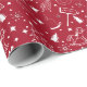 Red & White Christmas wrapping paper with toys, trees, and other holiday images.