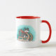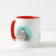 This brave feline adventurer doesn't care if it's snowing! A cute mug with red accents that match the red scarf our courageous sleighing cat is wearing.