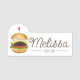Just personalise with your employee information, and title if desired. This name tag features an original illustration of a cheeseburger with lettuce, tomato, and onion.