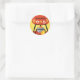 Get cheesy with these fun fondue stickers. Perfect for birthday or cocktail party invitations. Featuring an orange retro fondue pot with flowers, bubbling cheese and fondue forks on a removable Swiss cheese background. Coordinated party invitations, postage stamps and more! PinkInkArt original.
