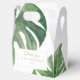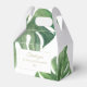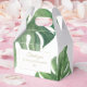 A favor box for weddings or parties with handpainted cheese plant leaves as a motif. The message is in gold swirled lettering and is customiseable.