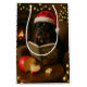Individually designed Christmas gift bag featuring a very handsome Rottweiler dog reading a book entitled 'Cheese Tax at Home Regulations 2025'.