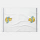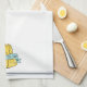 This funny cheese pun kitchen towel features the play on words phrase "cheese the day" on a banner wrapped around a wedge of swiss cheese.