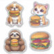 Introducing our Cheeseburger Chews sticker aet, featuring an irresistibly cute kitten, puppy, and sloth, all eagerly enjoying their cheeseburgers. This delightful set of stickers brings together three loveable animals in a fun and playful design, perfect for adding a touch of whimsy to your belongings.