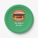 Cheeseburger Graphic on Green - Add Own Words Paper Plate