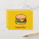 Cheeseburger cartoon illustration. Junk food outline icons yellow pattern background. Custom text.
