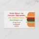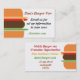 A fun business card with a burger theme for caterers,restaurant or any burger related business.