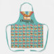 Retro vibe cheesecake slices on this cooking or baking kitchen apron featuring your personalised text and choice of background colour, perfect for the kitchen or the grill.