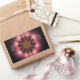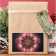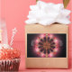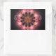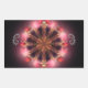 This fractal image depicts a large cheesecake cut into 12 slices. Each slices appears to be decorated with a bluish-green edible stencil of an abstract-looking angels. There is a triangle that represents the dress, two upside-down triangles above it that look like wings. Instead of a head, there are seven bands that stretch towards the top of the stencil. Surrounding the cheesecake are alternating pink and orange beads meant to serve as ornate decorations. Finally at the very top and bottom of the cheesecake are two yellowish angels. If you want a little slice of Heaven, then this is the perfect design for you!