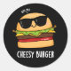 Cheesy Burger Funny Food Puns Dark BG Classic Round Sticker