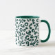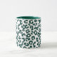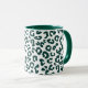 Coffee mug in a digital, minimalist, animal print in a cheetah pattern - spots in deep pine green on a white background
