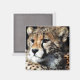 Square magnet with an image of the head of a gorgeous cheetah. The cheetah is a large feline (family Felidae, subfamily Felinae) inhabiting most of Africa and parts of Iran. It is listed as vulnerable, facing various threats including competition with and predation by other carnivores, a gene pool with very low variability, and persecution by mankind. See the entire Safari Magnet collection in the PARTY FAVORS section.
