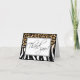 Thank you card with a cheetah print pattern that blends into a black & white zebra print pattern design under "Thank you!" in a script font. The inside is pre-printed with your own personalised message, or can be deleted to be left blank for handwriting your own sentiments of gratitude. No minimum order.