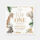 Gender neutral safari themed baby shower paper napkin featuring some jungle animals, tropical foliage and cheetah print pattern. This safari wild one baby shower napkin is ideal for a safari themed baby shower.