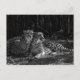 A postcard with a black and white photograph of pair of cheetahs.