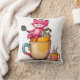 A 16" x 16" throw pillow with a whimsical cartoon of a chef cat, dog, and bunny in mugs, ideal for pet lovers’ home decor.