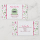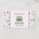 A business card for the chef or caterer featuring an illustration of a mint green retro stove on front. Background on both sides is kitchen themed pattern. Personalise the text on front and back with your contact information.