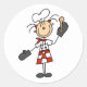 A stick figure girl chef wearing oven mitts holds a wooden spoon on our chef design T-shirts, mugs, mousepads, tote bags, cards, and other items you can customise with text or a name.