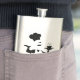 The product is a good size and came exactly as it was pictured.  The lid is not attached to the flask, which could be dangerous on drunken nights... The print came out surprisingly well and looks very sharp.  Would definitely recommend.