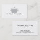 Modern, simple yet elegant profile or business card in white and grey. On the front is a grey logo of a pot with two handles. This can be changed for your own logo. Customisable name and title / company name on the front and contact information on the back.