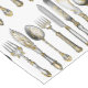 A shabby chic design of ornate vintage style knives, forks and spoons that have elegant faux gold and silver gildings. Ideal for hotels, lodges, guest houses, bed and breakfast resorts and restaurants looking for unique, stylish and classy décor and soft furnishings. Suitable as gifts for the food and hospitality industry too.