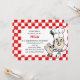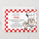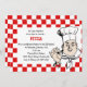 A casual invitation featuring a red and white check background and a chef. Ideal for any celebration and any age. The card is easy to customise with your wording, font, font colour and choice of six paper types.