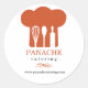 A graphic of an orange chef's hat with kitchen tools creating negative space within dominates this promotional sticker. Versatile enough to work for a catering company, personal chef or baker. Available in alternate colours with matching products.