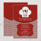 A crisp red and white invitation featuring a chef's hat with utensils. Shown as a post wedding brunch invitation, it is also perfect for a rehearsal dinner party or a ladies' luncheon.