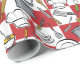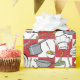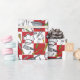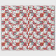 Red and white chequerboard pattern with a variety of cooking utensils.