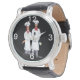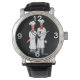 An original watercolor painting by Anne Ormsby of two chefs adorns this fun watch.