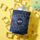 Chemistry theme dark blue can cooler with a chemistry molecules design, and a monogram circle on the front and back to add your own initials
