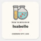 Kitchen stickers with a cute illustration of a test tube holding yellow liquid and a rounded flask/beaker holding green liquid with red bubbles.
