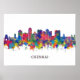 Elegant Watercolor Skyline of Chennai, on the Bay of Bengal in eastern India, the capital of the state of Tamil Nadu