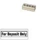 This plain rubber stamp design features the message "For Deposit Only". It might perhaps be used by an administrative professional or an accounting professional to efficiently add a restrictive endorsement to a cheque.