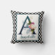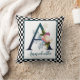 Chequerboard Fancy Floral Monogram Letter A Cushion