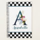 Chequerboard Fancy Floral Monogram Letter A Planner