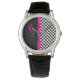 Chequerboard Racing Flag Pink Line Custom Name Watch