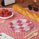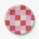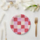 chequerboard valentine plaid red pink cream preppy paper plate