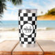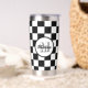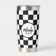 Chequered Black and White geometric retro Monogram Insulated Tumbler