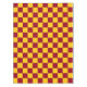 Abstract digital art of burgundy and gold squares in a chequered formation.
